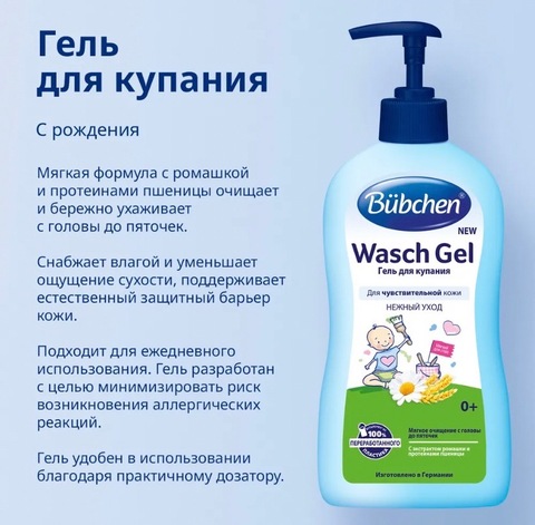 Гель для купания c дозатором "Нежный уход с ромашкой" Bubchen 400 мл.